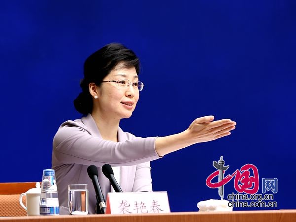 国新办新闻局副局长袭艳春邀请记者提问。中国网 宗超 摄