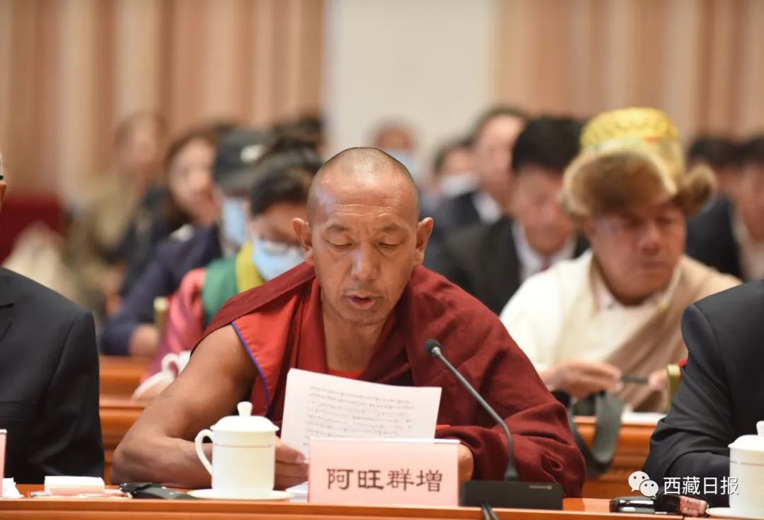 这是宗教界代表阿旺群增在座谈会上发言。记者 李洲 摄