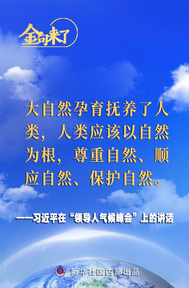 北京时间4月22日晚,国家主席习近平在“领导人气候峰会”上发表题为《共同构建人与自然生命共同体》的重要讲话,一起来看金句吧!