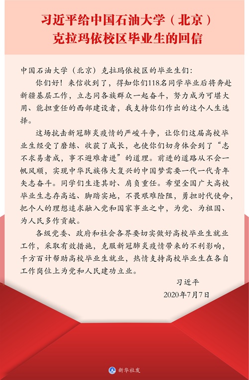 图表:习近平给中国石油大学(北京)克拉玛依校区毕业生的回信 新华社发