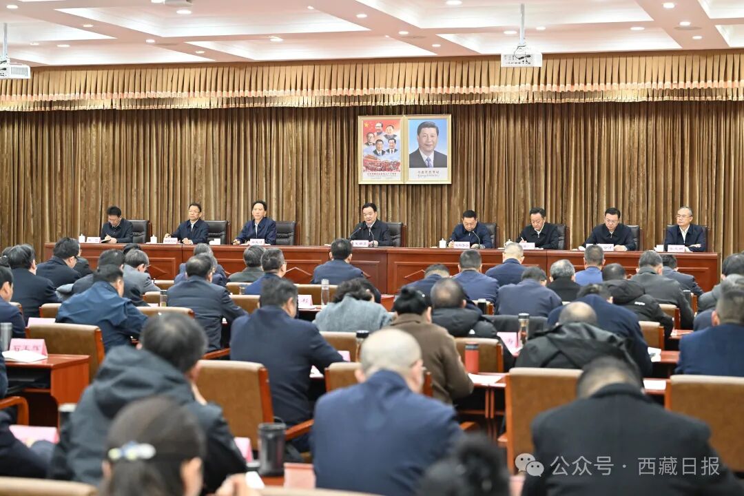 王君正强调,要坚持以习近平总书记关于西藏工作的重要指示和新时代党的治藏方略为统领,按照自治区党委十届九次全会部署要求,全面深入推进“四件大事”落实。牢固树立总体国家安全观,不断提升社会治理体系和治理能力现代化水平,进一步铸牢中华民族共同体意识、推进中华民族共同体建设,深化拓展“国家意识、公民意识、法治意识”教育成果,提高宗教事务治理法治化水平,系统推进藏传佛教中国化,着力巩固团结稳定的政治和社会局面。完整准确全面贯彻新发展理念,坚持“三个赋予一个有利于”总要求,坚持改善民生、凝聚人心,坚持投资于物与投资于人紧密结合,坚持全面深化改革,立足资源禀赋,做大做强“九大产业”,因地制宜推动高原经济高质量发展。牢固树立“两山”理念,坚定不移走生态优先、绿色发展之路,严格落实青藏高原生态保护法及其实施办法,坚持山水林田湖草沙一体化保护和系统治理,科学开展国土绿化行动,协同推进降碳、减污、扩绿、增长,筑牢国家生态安全屏障。坚持屯兵和安民并举、固边和兴边并重,因地制宜发展边境产业,加快推进边境地区现代化建设,确保边疆发展、边防巩固、边境安全。