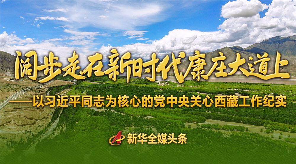 在以习近平同志为核心的党中央坚强领导和亲切关怀下,西藏各族儿女正意气风发、携手同行,阔步走在新时代康庄大道上。