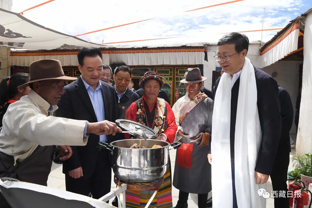 上海市领导朱芝松、李政,自治区领导达娃次仁、郎福宽、斯朗尼玛参加。