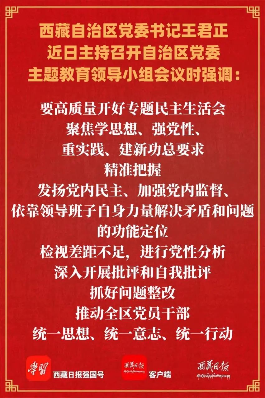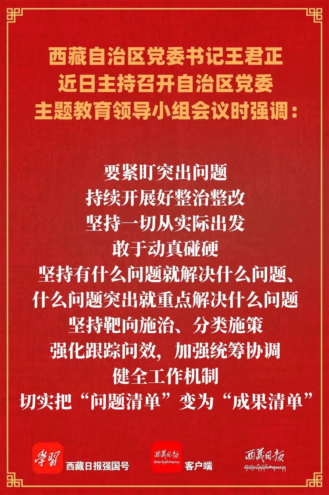 近日,自治区党委书记、自治区党委主题教育领导小组组长王君正主持召开自治区党委主题教育领导小组会议,认真传达学习中央主题教育领导小组相关会议精神。强调,要认真学习贯彻习近平总书记关于主题教育系列重要讲话重要指示精神,深入贯彻党中央决策部署,坚决扛起政治责任,高质量落实重点任务,高标准抓好整改整治,推动主题教育走深走实。